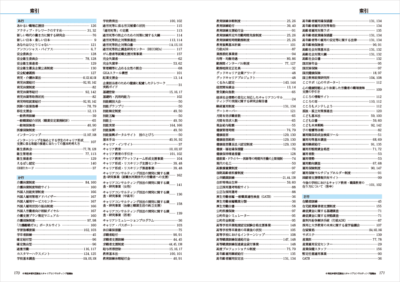 キャリアコンサルティング関連情報集は、キャリアコンサルティングの学習者をはじめとして、日ごろ各現場で活躍するキャリアコンサルタント、研修講師、人事労務担当者等、キャリアコンサルティングに関わる全ての方の役に立つ最新の社会の動きや労働市場等に関する資料・情報を、簡潔かつ網羅的にワンストップで提供することを目的に、2018年度から毎年発刊されています。領域Ⅱは国家資格キャリアコンサルタントの能力要件に沿った章立てで構成されており、より現場での活用も意識した内容となっています。